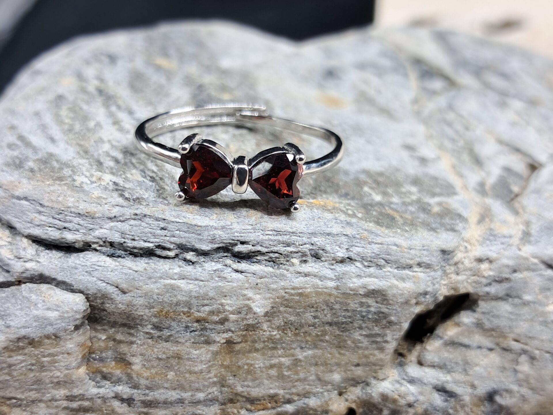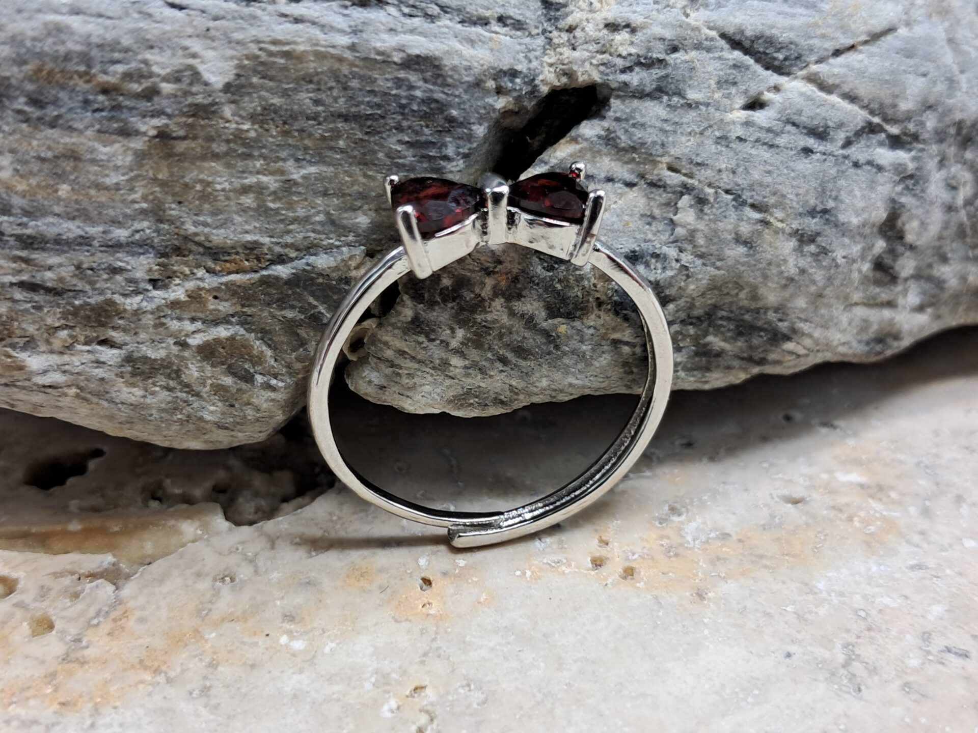 Bague nœud papillon cœur grenat