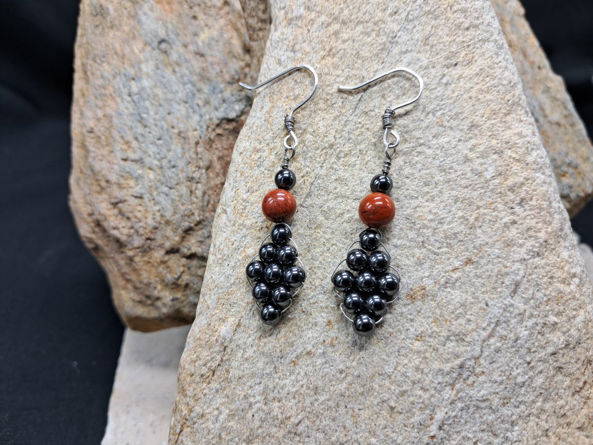 Boucles d’oreilles jaspe rouge de 6mm et hématite 4mm