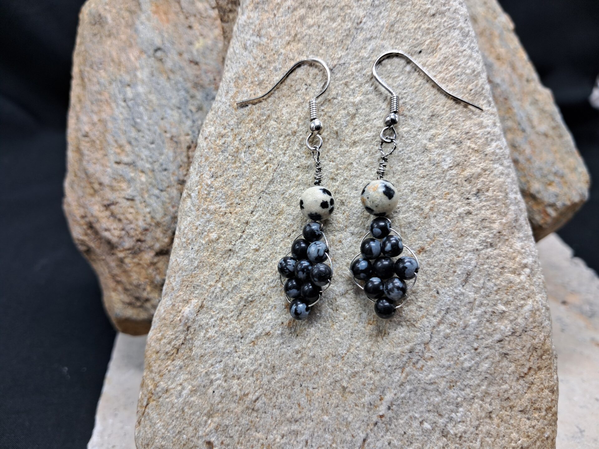 Boucles d’oreilles jaspe dalmatien 6mm et obsidienne neige 4mm