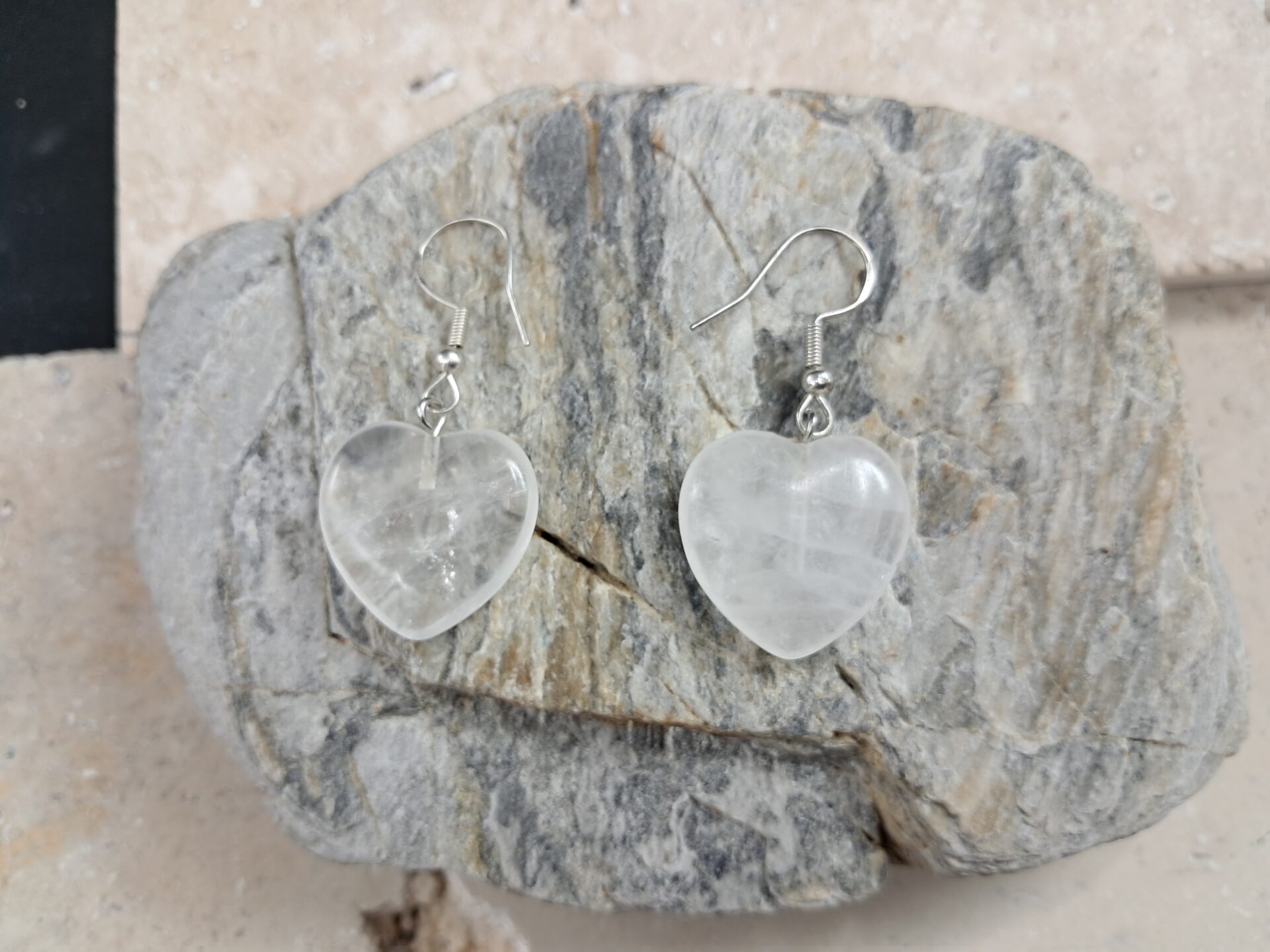 Boucles d’oreilles cœur cristal de roche (2cm)