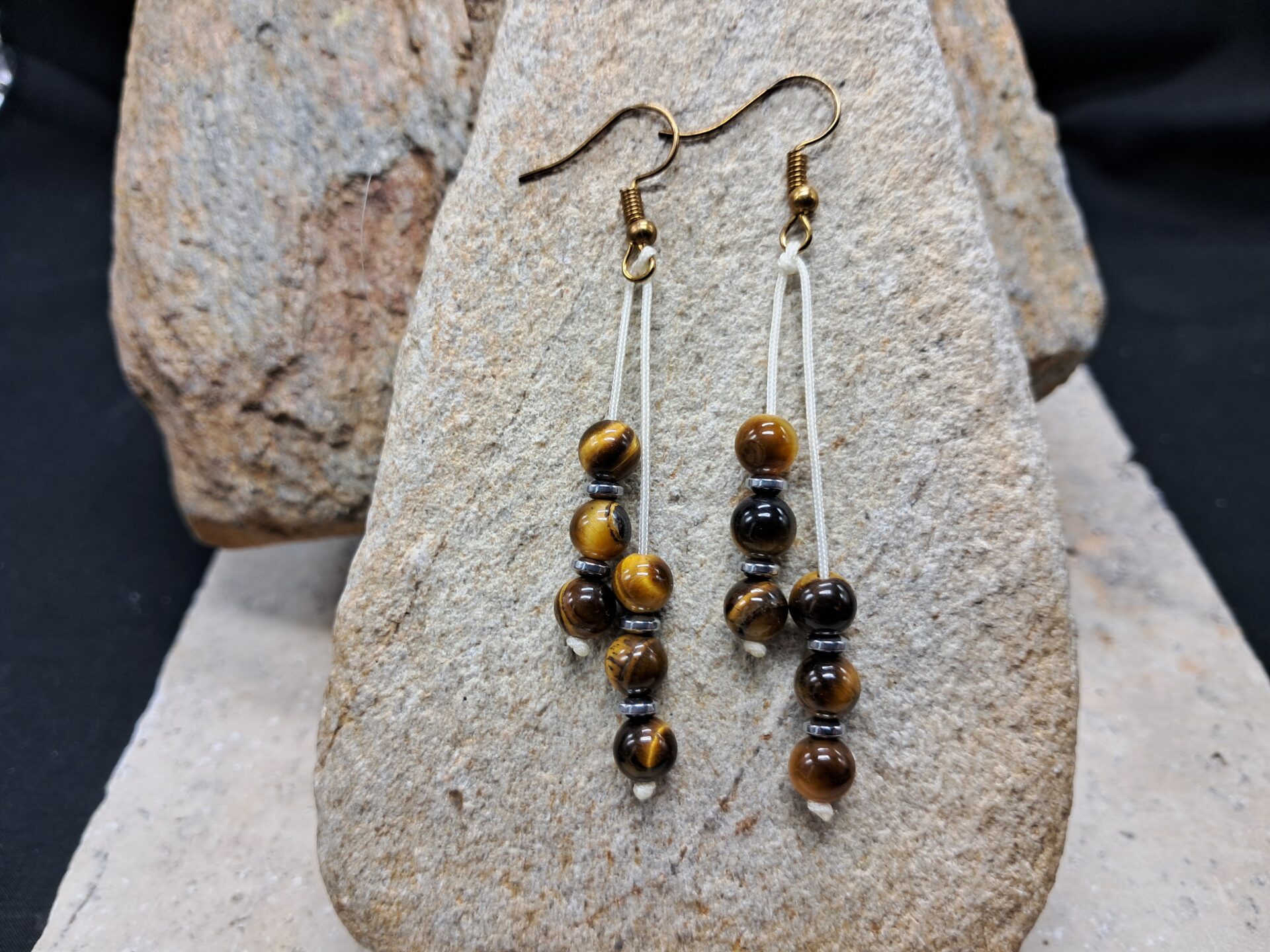 Boucles d’oreilles œil de tigre perles 6mm