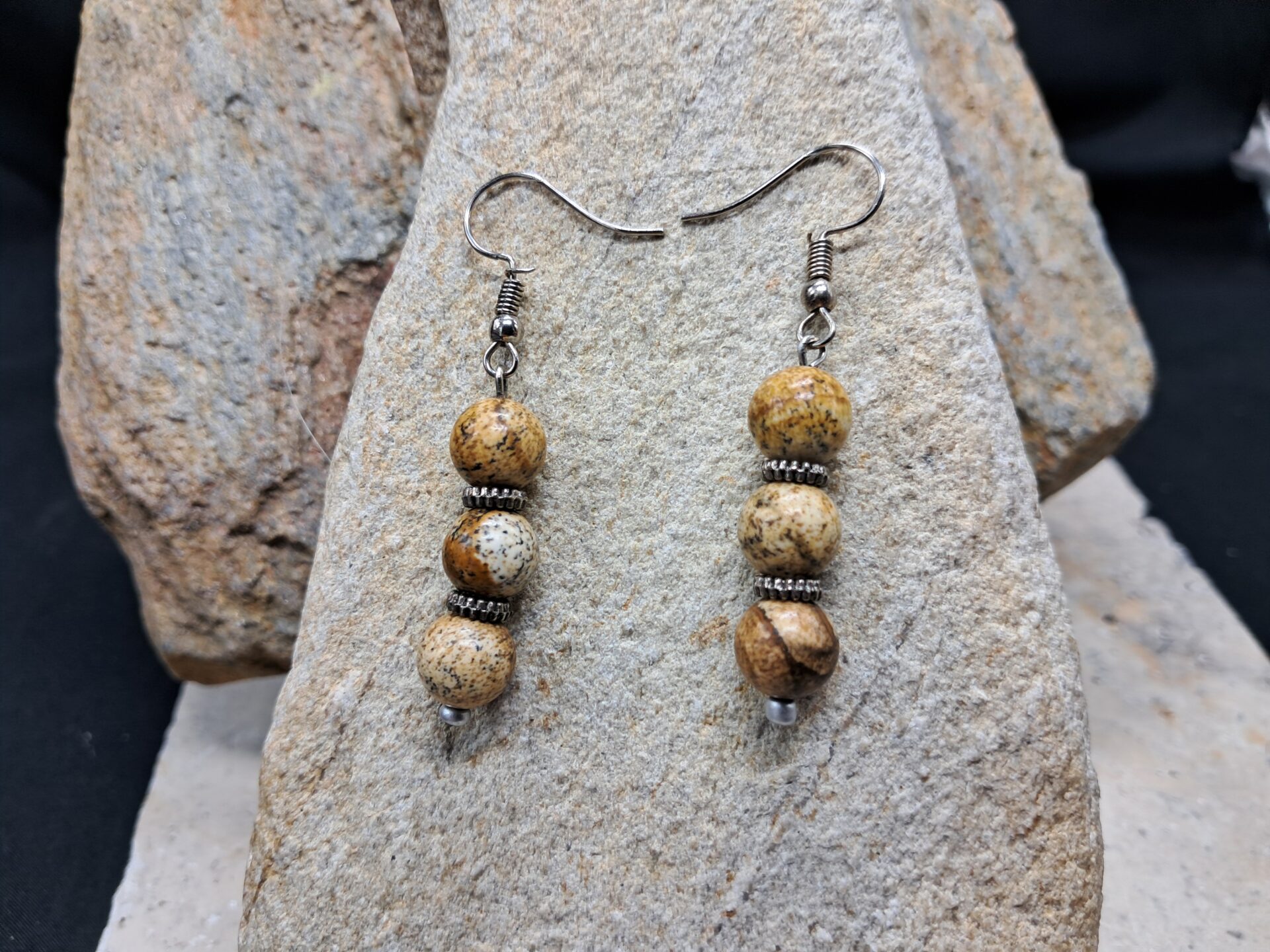 Boucles d’oreilles triple perles jaspe paysage 8mm