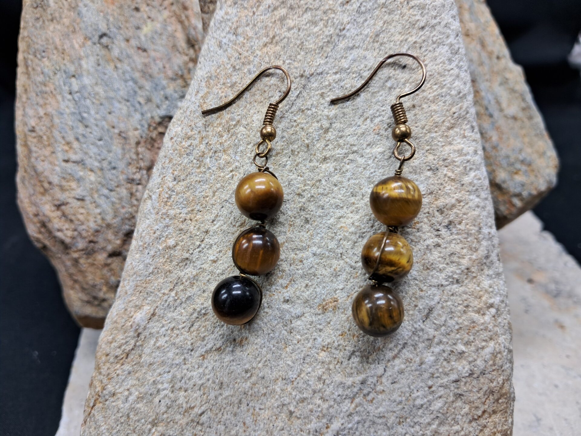 Boucles d’oreilles triple perles œil de tigre 8mm
