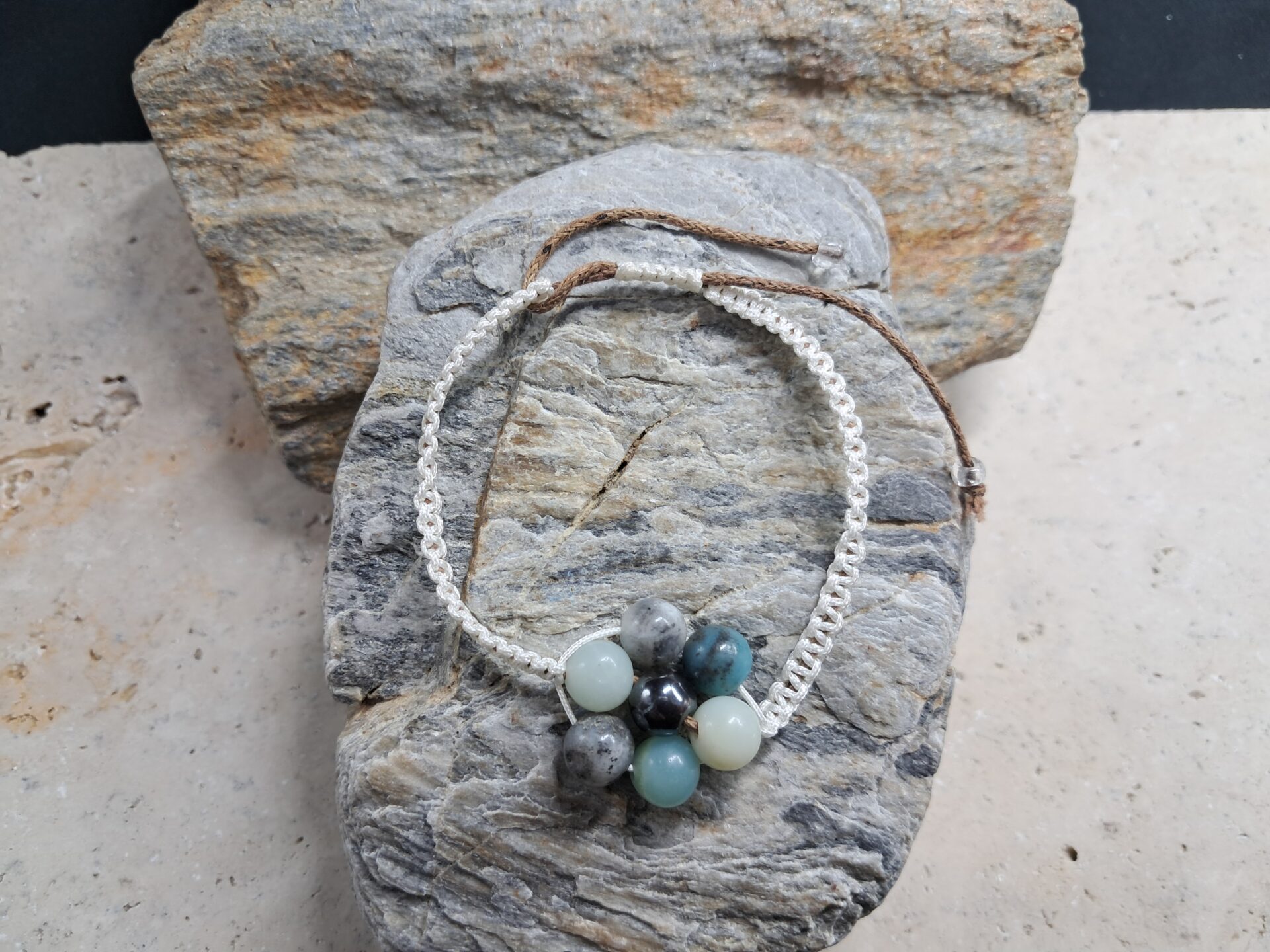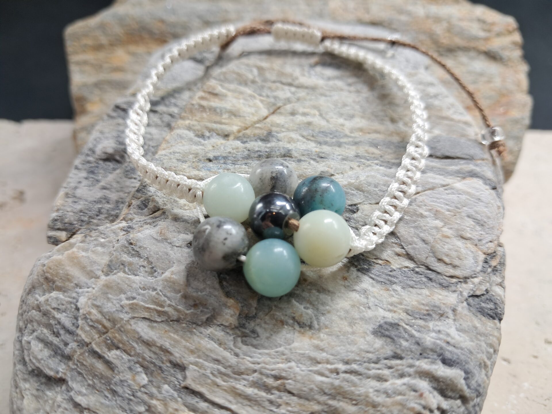Bracelet amazonite multicolore et hématite perles de 8mm