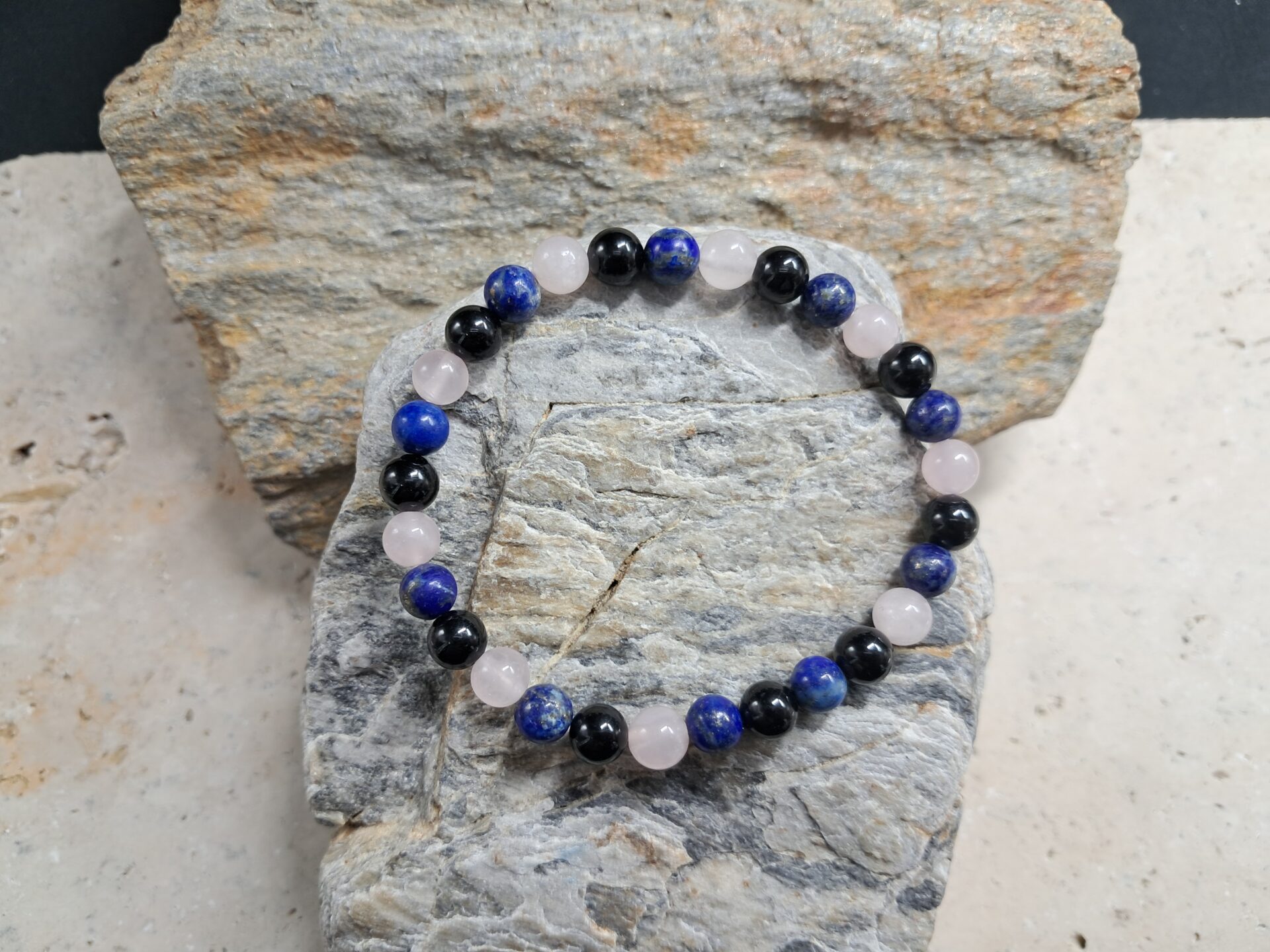 Bracelet lapis lazuli, quartz rose, obsidienne perle 6mm