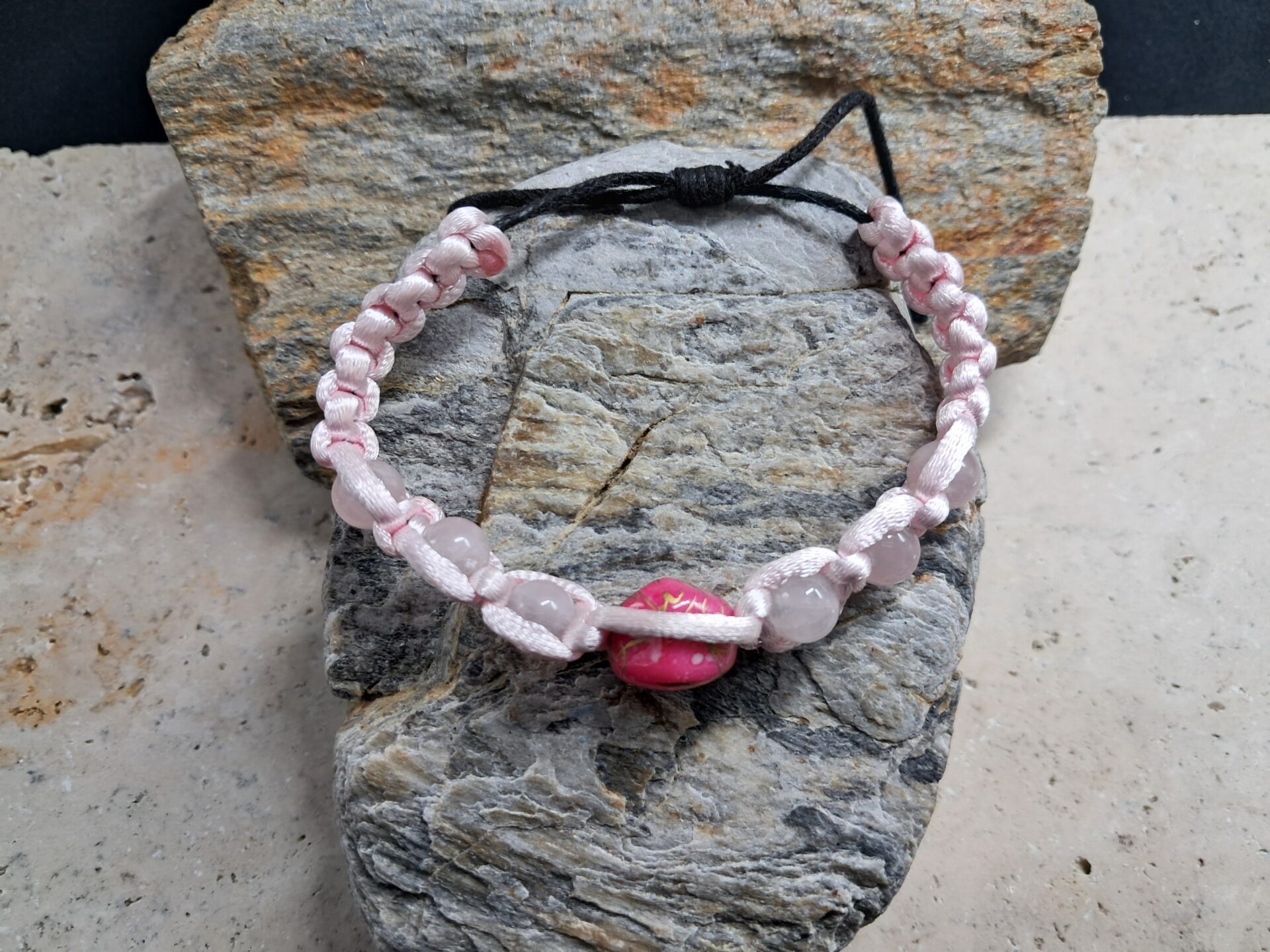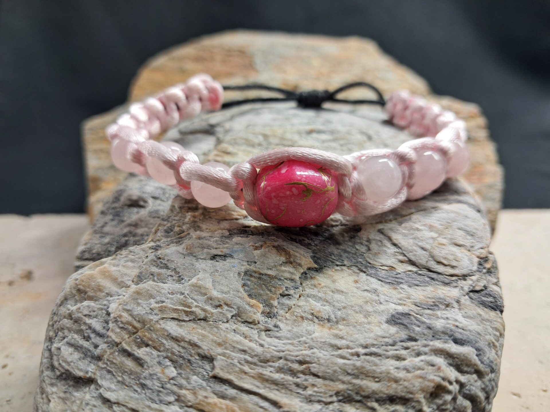 Bracelet réglable avec cordelette satin et perle acrylique.