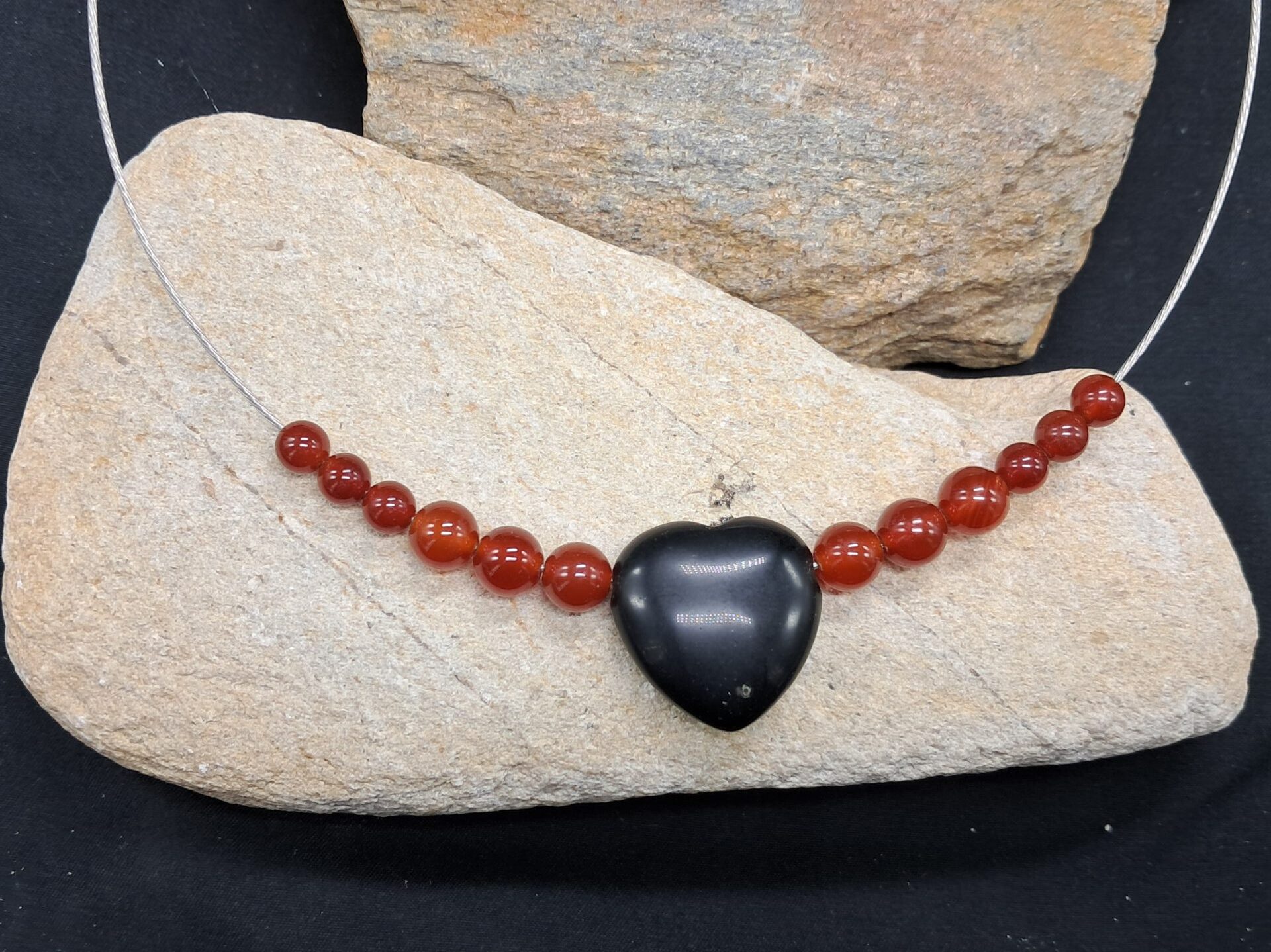 Collier cornaline et cœur obsidienne 8mm