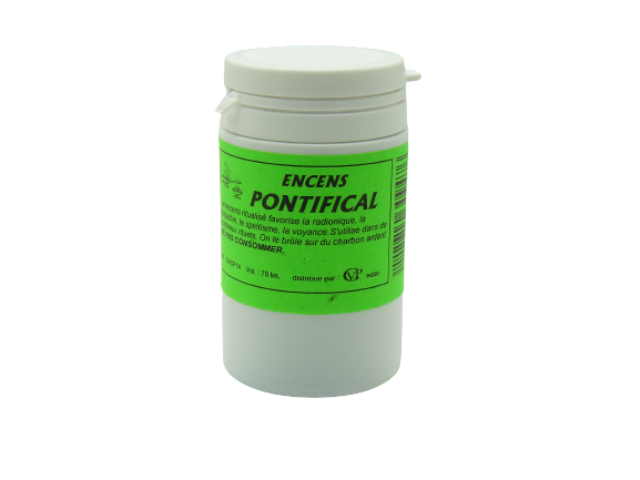 L’encens Pontifical est utilisé pour les rituels cérémoniaux et autres rituels; celui-ci appuie fortement les prières et favorise les actions à distance. Il est un purificateur. Boîte de 70 Ml