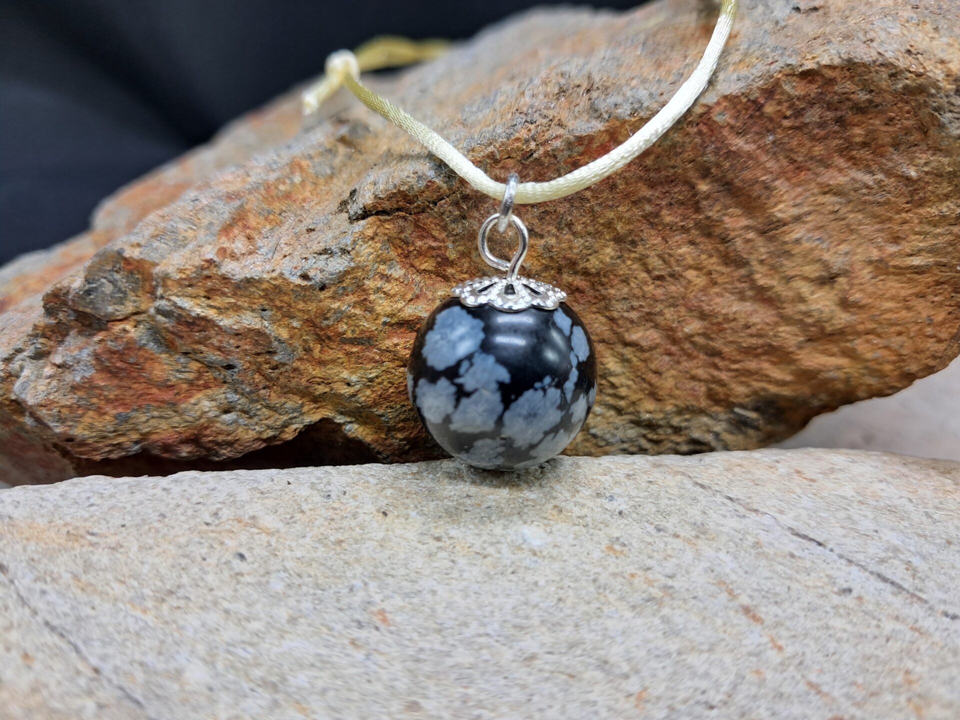 Pendentif pierre boule Obsidienne Neige collection Honua (1,6cm)