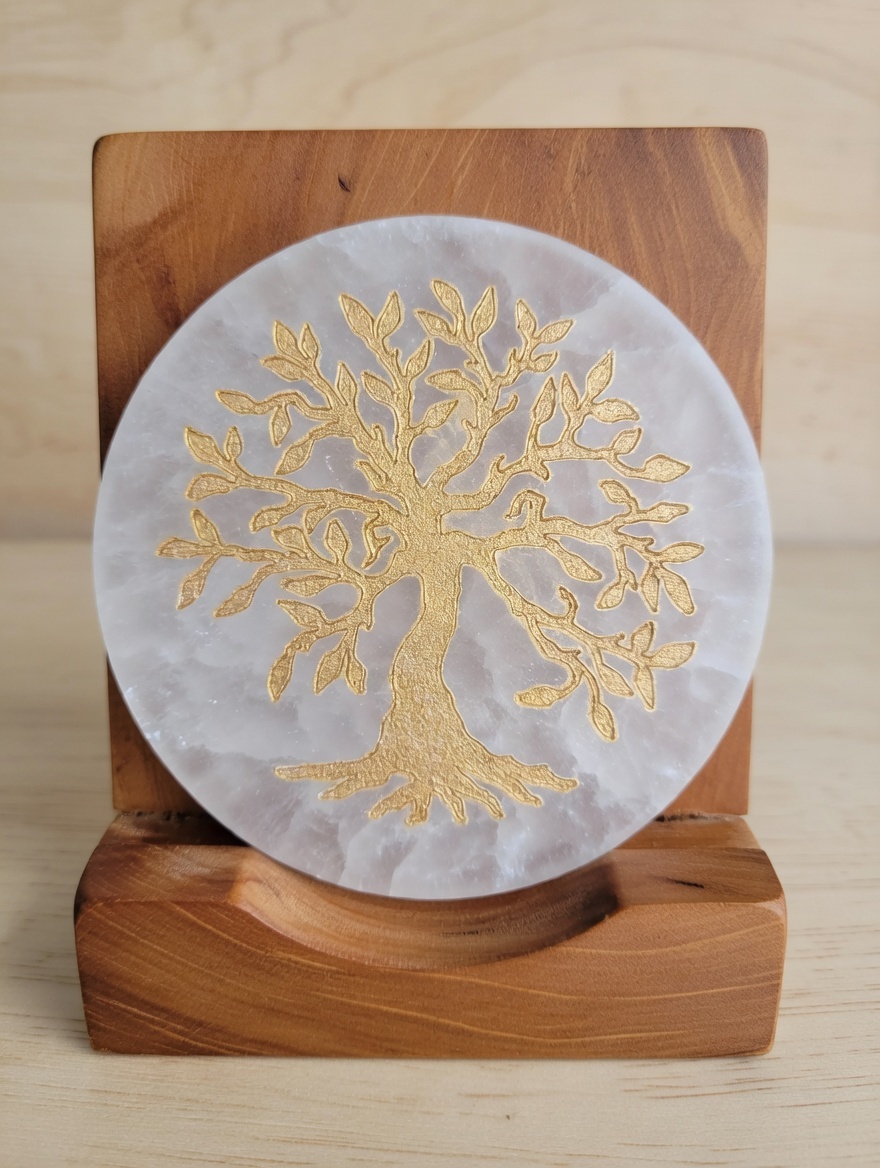 20 €Pour recharger vos bijoux en pierres naturelles il est conseillé de choisir une plaque de rechargement en sélénite. Elle nettoie et recharge vos bijoux sans effort, simplement en les posant dessus. L’arbre de vie étant le symbole du renouveau et de la régénération.